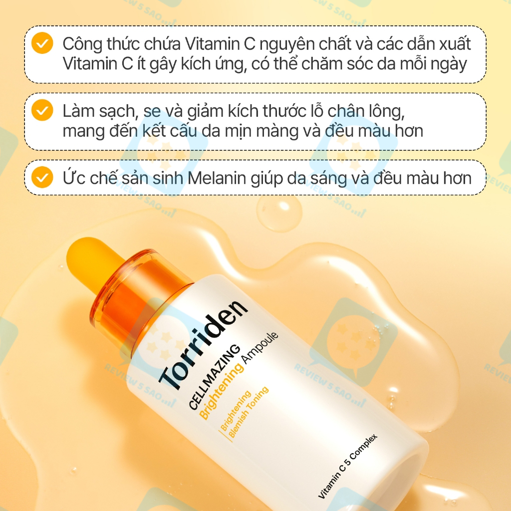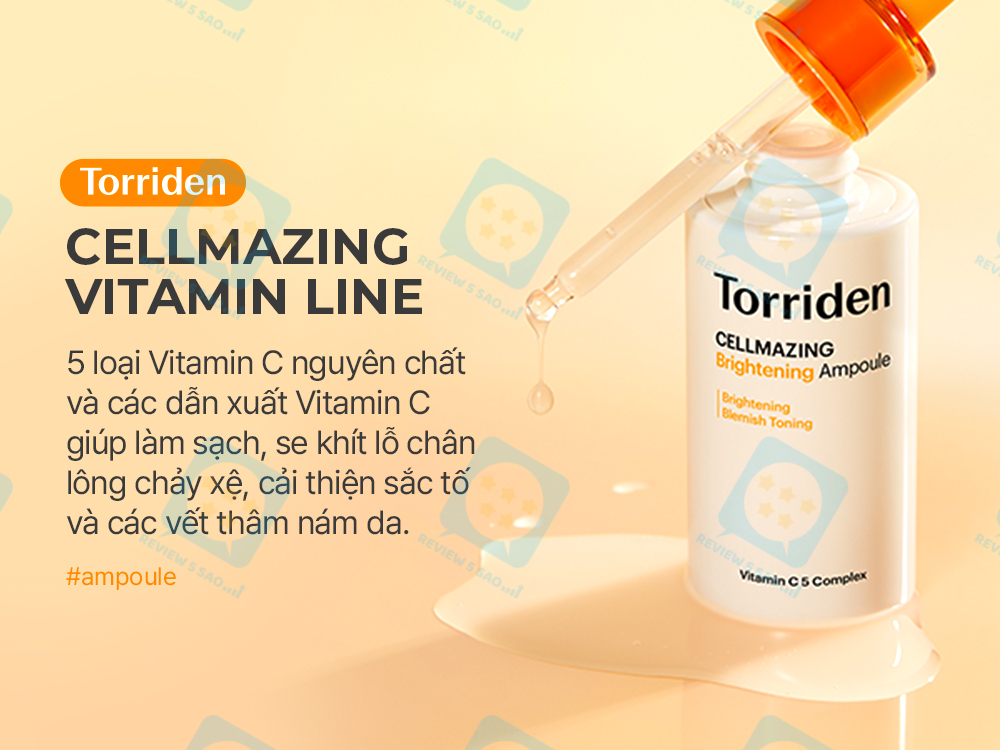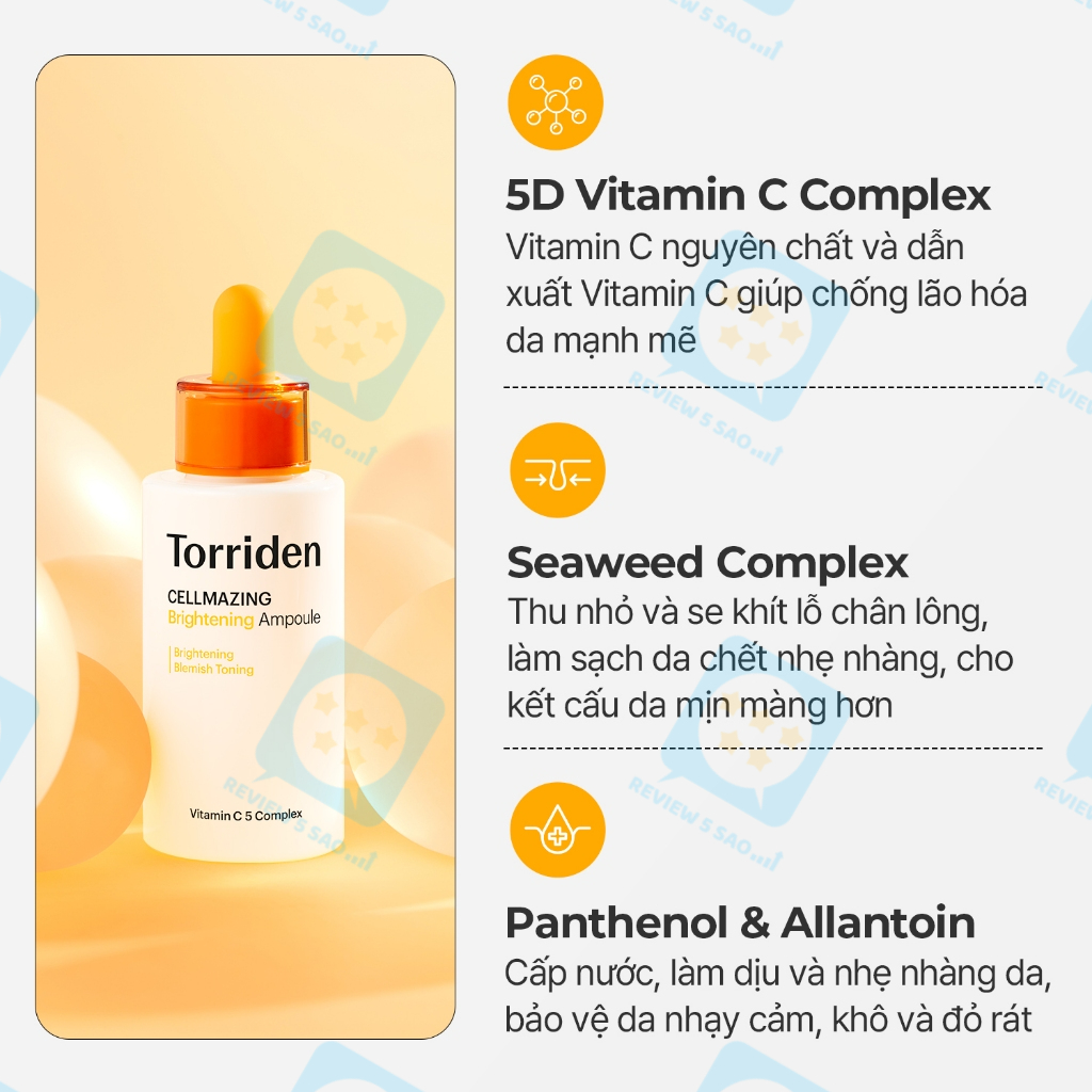 Sold by Review 5 SaoHãy thử ngay Tinh chất Cellmazing Vitamin C của Torriden! Với công thức giàu Vitamin C 5D, sản phẩm không chỉ cải thiện sắc tố da mà còn mang lại làn da rạng rỡ, không tỳ vết.