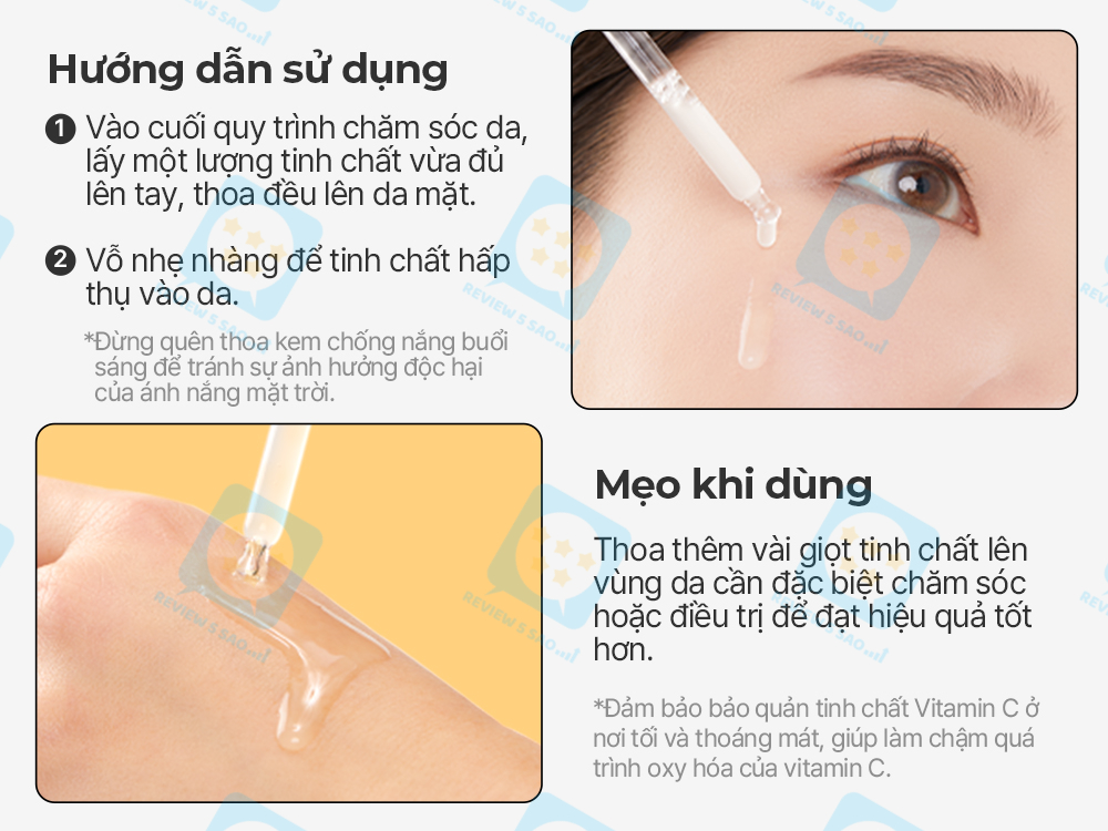 Công thức Vitamin C mạnh mẽ giúp tăng cường độ sáng, cải thiện sắc tố và xóa mờ vết thâm hiệu quả.