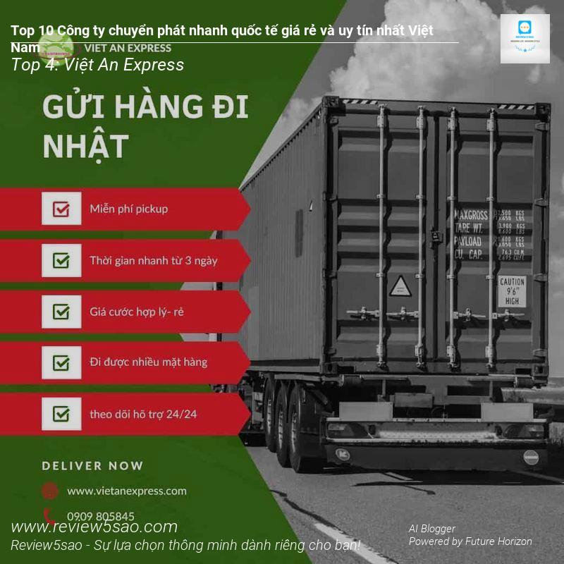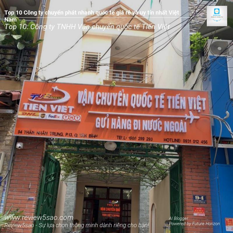 Bạn đang tìm kiếm dịch vụ chuyển phát nhanh quốc tế giá rẻ và uy tín nhất Việt Nam? Review5sao.com sẽ giúp bạn! Top 10 công ty chuyển phát nhanh quốc tế giá rẻ và uy tín nhất Việt Nam bao gồm: Viettel Post, TTI Express, An Bình Express, Việt An Express, DHL, Helen Express, Chuyển phát nhanh quốc tế Đại Phát Nguyên, WinGo Logistics, Công ty chuyển phát nhanh quốc tế GETSS, Công ty TNHH Vận chuyển quốc tế Tiến Việt.