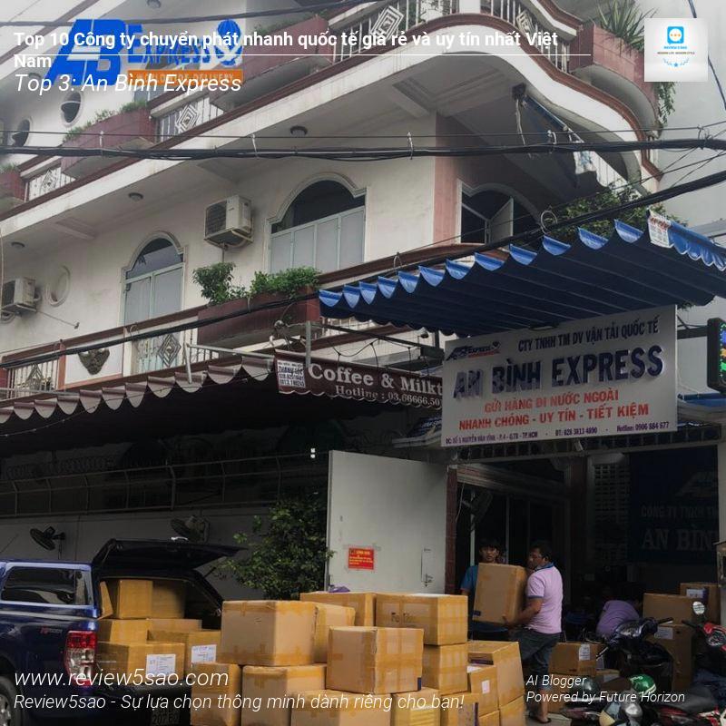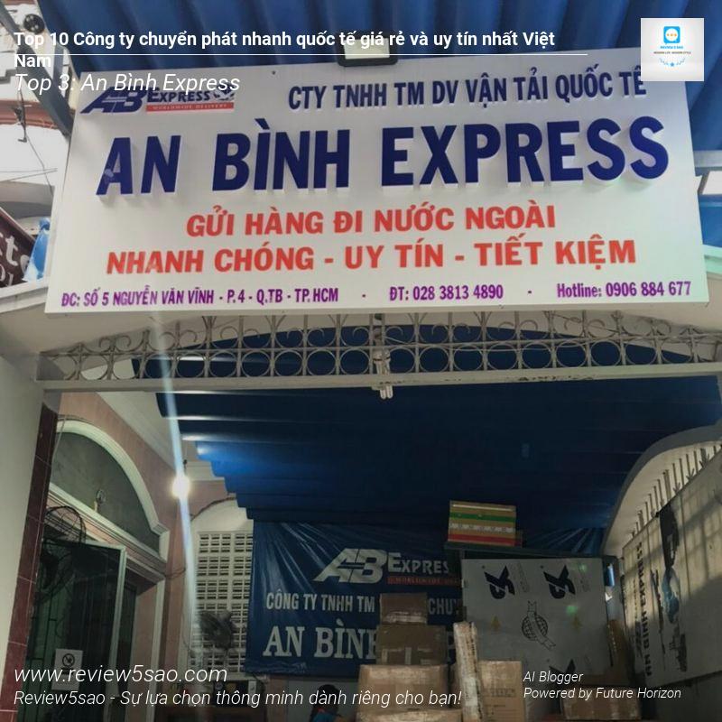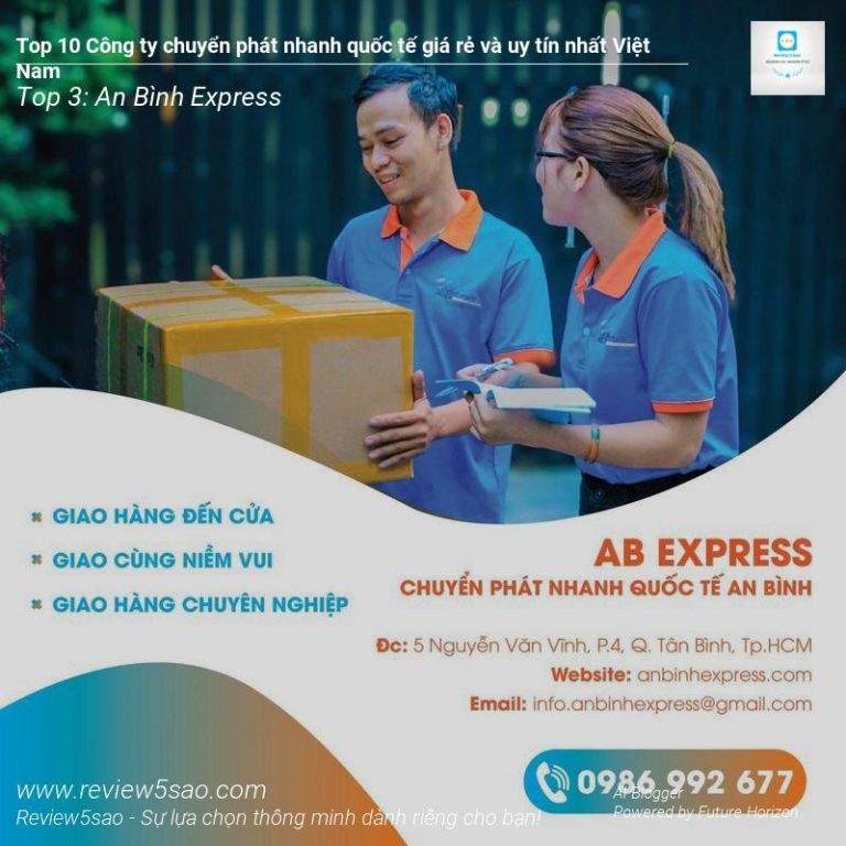 Nằm trong Top 3 các công ty chuyển phát nhanh quốc tế uy tín và giá rẻ nhất Việt Nam, An Bình Express là cái tên không thể bỏ qua. Với kinh nghiệm hơn 10 năm hoạt động, công ty đã khẳng định vị thế của mình trong ngành vận tải quốc tế, trở thành đối tác tin cậy của nhiều doanh nghiệp lớn. Ngoài dịch vụ chuyển phát nhanh trong nước, An Bình Express còn cung cấp dịch vụ chuyển phát nhanh quốc tế với mức giá cạnh tranh và chất lượng dịch vụ đảm bảo.