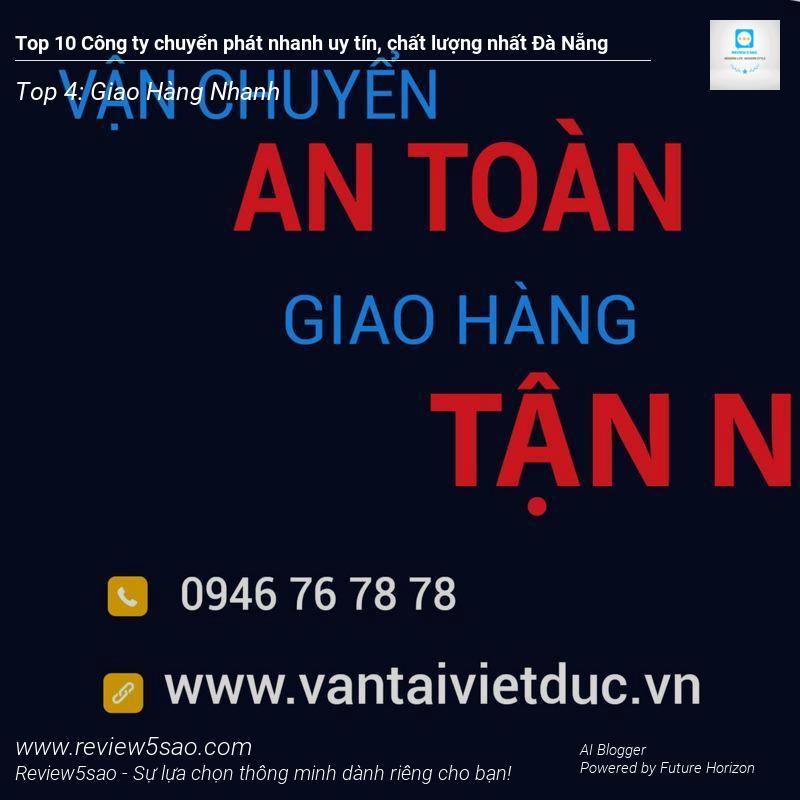 Giao Hàng Nhanh, một trong những cái tên quen thuộc trong ngành vận chuyển, tự hào có mặt trong Top 4 công ty chuyển phát nhanh uy tín nhất Đà Nẵng theo đánh giá của Review5sao.com. Với hệ thống phủ rộng khắp 63 tỉnh thành, cùng đội ngũ giao hàng chuyên nghiệp, Giao Hàng Nhanh xử lý đơn hàng với tốc độ đáng kinh ngạc, vận chuyển hơn 250,000 đơn hàng mỗi ngày trên toàn quốc và hợp tác với nhiều sàn thương mại điện tử lớn. Chất lượng dịch vụ tuyệt vời và chế độ bồi thường chu đáo là những điểm cộng đáng kể. Mặc dù chi phí có thể cao hơn một chút so với các đơn vị khác, nhưng sự an tâm và hiệu quả mà Giao Hàng Nhanh mang lại là điều không thể phủ nhận.