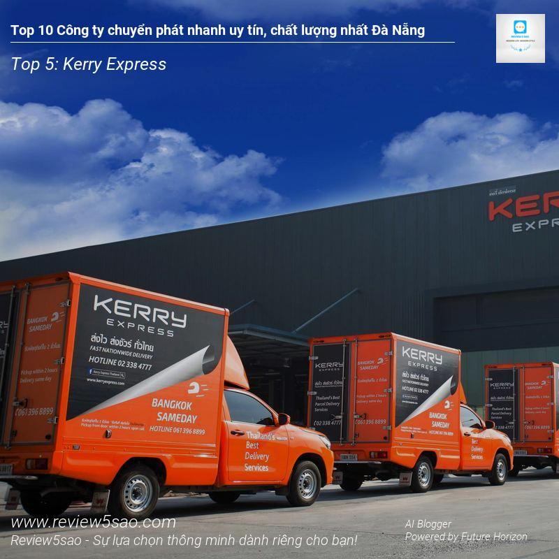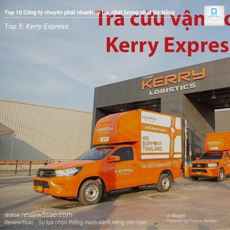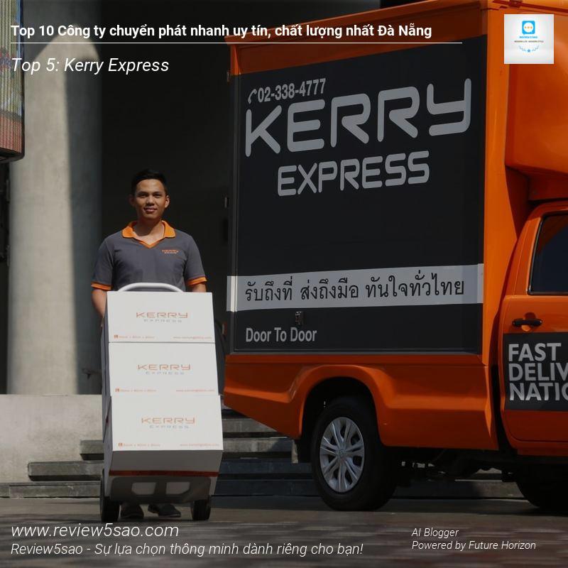 Kerry Express xuất sắc giành vị trí Top 5 trong danh sách Top 10 công ty chuyển phát nhanh uy tín và chất lượng nhất Đà Nẵng trên Review5sao.com! Với kinh nghiệm dày dặn và hệ thống phân phối trải rộng khắp cả nước, Kerry Express tự hào sở hữu cơ sở vật chất hiện đại, vận hành hiệu quả và cung cấp giải pháp chuỗi cung ứng toàn diện. Cam kết tốc độ giao hàng nhanh chóng và chất lượng dịch vụ hàng đầu, Kerry Express luôn đặt sự hài lòng của khách hàng lên hàng đầu. Bạn hoàn toàn có thể yên tâm gửi gắm hàng hóa của mình cho họ.