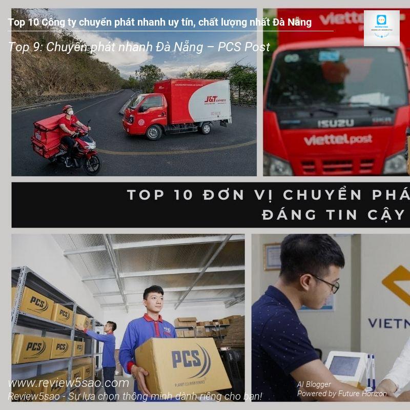 Review5sao.com – Website đánh giá và xếp hạng sản phẩm hàng đầu, giúp bạn chọn lựa thông minh! Bài viết này so sánh Top 10 công ty chuyển phát nhanh uy tín tại Đà Nẵng: J&T Express, Giao Hàng Tiết Kiệm, Viettel Post, Giao Hàng Nhanh, Kerry Express, VN Post, Nhất Tín Logistics, Best Express, PCS Post, Ninja Van. Khám phá ưu điểm, nhược điểm của từng đơn vị để tìm ra lựa chọn phù hợp nhất cho nhu cầu của bạn.