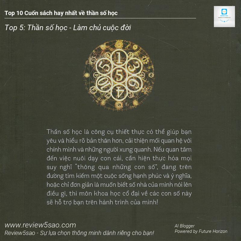 Review5sao.com – Website đánh giá và xếp hạng sản phẩm #1, mang đến Top 10 cuốn sách hay nhất về Thần số học giúp bạn khám phá bí ẩn cuộc sống. Từ những cuốn sách ứng dụng đến những cuốn sách chuyên sâu, chúng tôi tổng hợp những lựa chọn chất lượng, đáng tin cậy, giúp bạn dễ dàng tìm được cuốn sách phù hợp. Khám phá ngay!