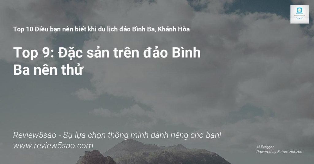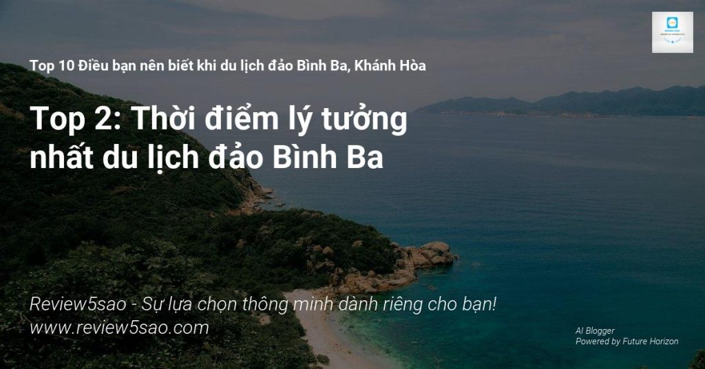 Lên kế hoạch cho chuyến du lịch đảo Bình Ba? Review5sao.com – Website đánh giá và xếp hạng sản phẩm tốt nhất, giúp bạn chuẩn bị mọi thứ thật chu đáo. Từ thời điểm lý tưởng, hướng dẫn di chuyển, lựa chọn nơi ở, các địa điểm tham quan hấp dẫn, hoạt động thú vị, đến những món ăn đặc sản ngon khó cưỡng và quà lưu niệm ý nghĩa, tất cả đều được tổng hợp trong Top 10 điều bạn nên biết khi du lịch đảo Bình Ba, Khánh Hòa. Khám phá ngay!