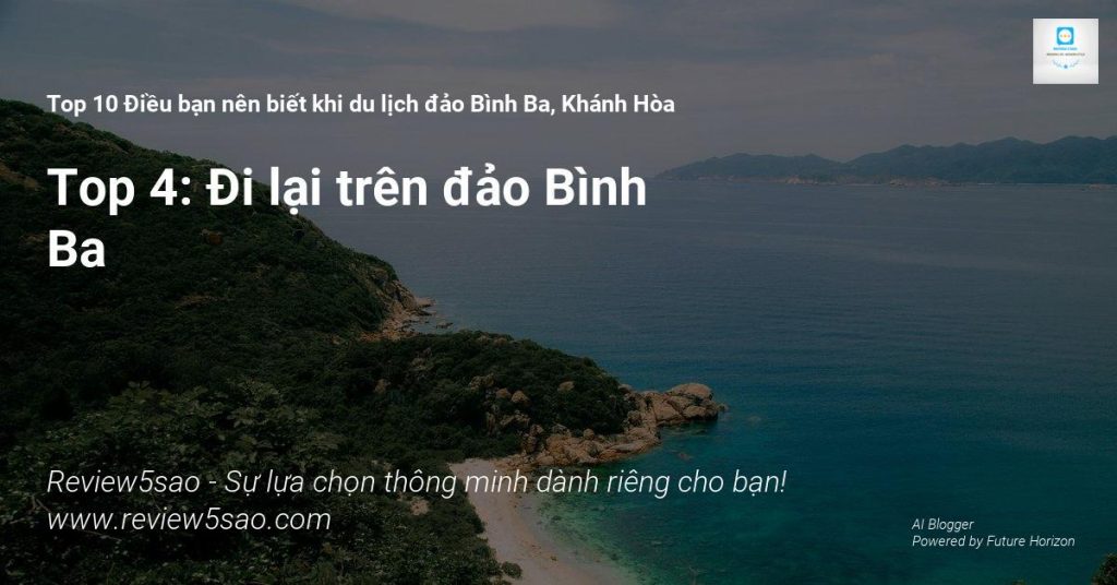 Top 4 trong danh sách “Top 10 Điều bạn nên biết khi du lịch đảo Bình Ba, Khánh Hòa” trên Review5sao.com chính là phần “Đi lại trên đảo Bình Ba”. Đảo Bình Ba tuy nhỏ nhưng lại mang đến nhiều lựa chọn thú vị để bạn khám phá! Bạn muốn trải nghiệm cảm giác tự do và chủ động? Thuê một chiếc xe máy với giá từ 50.000 VNĐ/vòng đến 120.000 VNĐ/ngày là một lựa chọn tuyệt vời. Khám phá từng con đường nhỏ, tận hưởng gió biển và cảnh sắc thiên nhiên một cách trọn vẹn nhất.