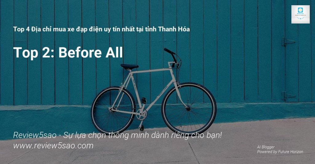 Đứng ở vị trí Top 2 trong danh sách “Top 4 Địa chỉ mua xe đạp điện uy tín nhất tại tỉnh Thanh Hóa” trên Review5sao.com, hệ thống cửa hàng Before All thực sự nổi bật với rất nhiều ưu điểm. Họ không chỉ cung cấp những chiếc xe đạp điện chính hãng, chất lượng cao mà còn mang đến cho khách hàng sự an tâm với hệ thống bảo hành dài hạn, chu đáo. Thiết kế xe đạp điện của Before All rất đa dạng và độc đáo, phù hợp với nhiều đối tượng khách hàng và nhu cầu sử dụng khác nhau. Điều đó giúp khách hàng dễ dàng lựa chọn được sản phẩm ưng ý nhất. Đội ngũ nhân viên chuyên nghiệp, nhiệt tình và luôn sẵn sàng hỗ trợ khách hàng sẽ giúp bạn có những trải nghiệm mua sắm tuyệt vời. Chưa kể đến những chương trình ưu đãi hấp dẫn, tri ân khách hàng thường xuyên được tổ chức, hứa hẹn sẽ làm hài lòng ngay cả những khách hàng khó tính nhất.