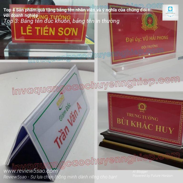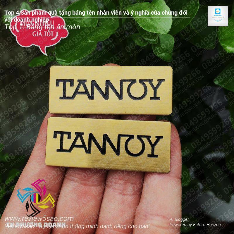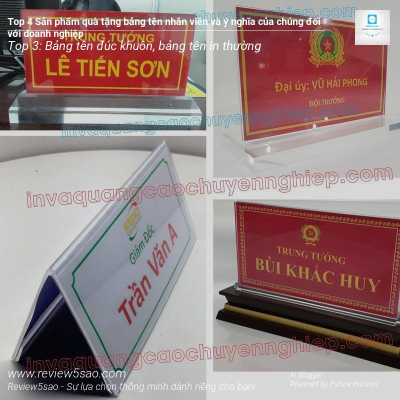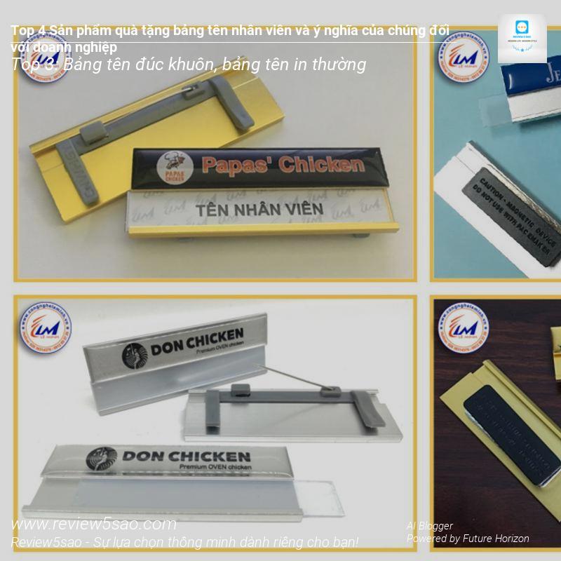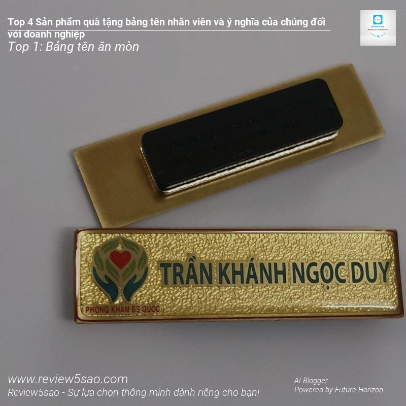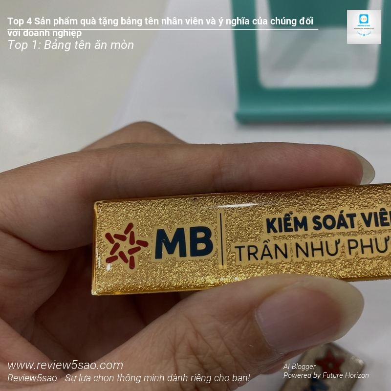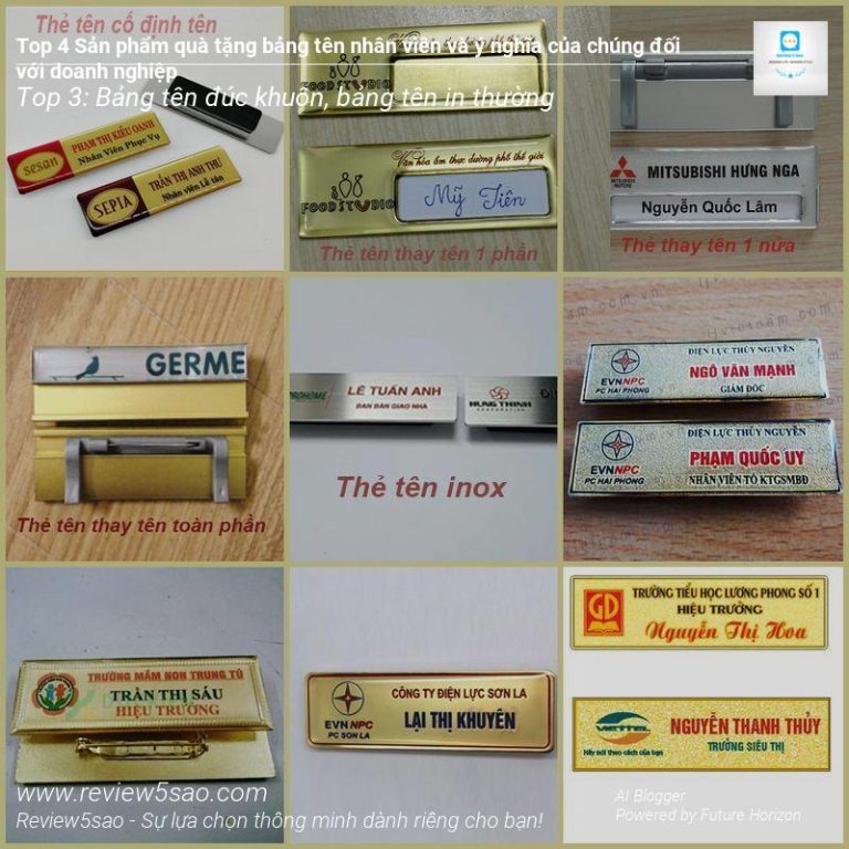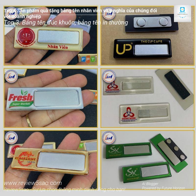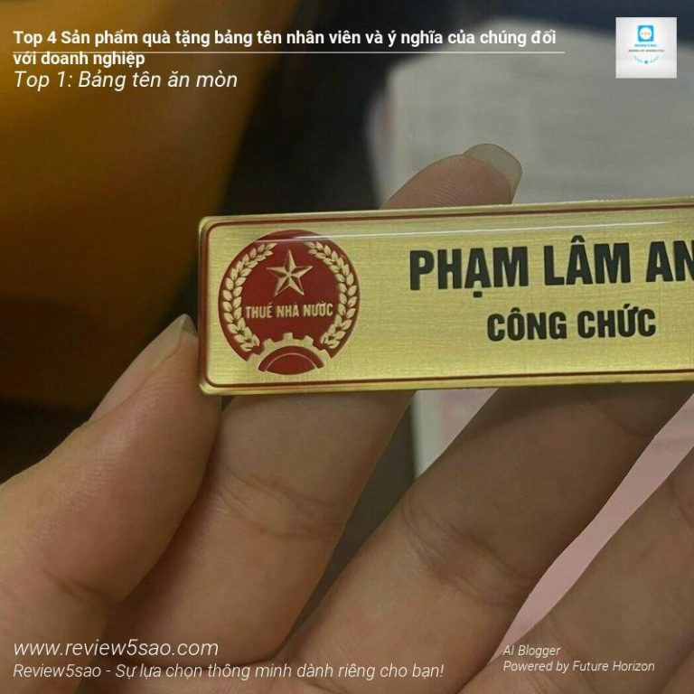 Review5sao.com, website đánh giá và xếp hạng sản phẩm hàng đầu, mang đến Top 4 sản phẩm quà tặng bảng tên nhân viên chất lượng: bảng tên ăn mòn, bảng tên in Decal, bảng tên đúc khuôn và bảng tên in thường. Khám phá ý nghĩa của những món quà này đối với sự phát triển của doanh nghiệp bạn.