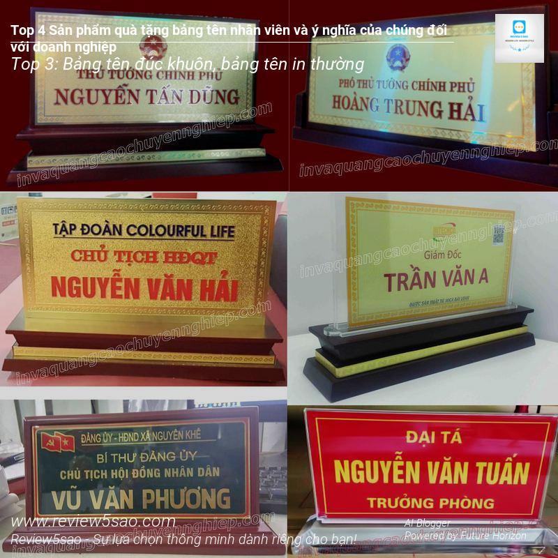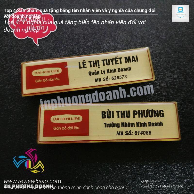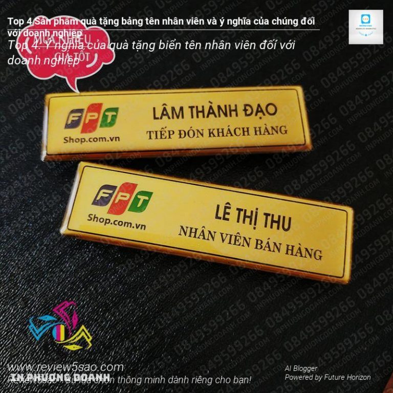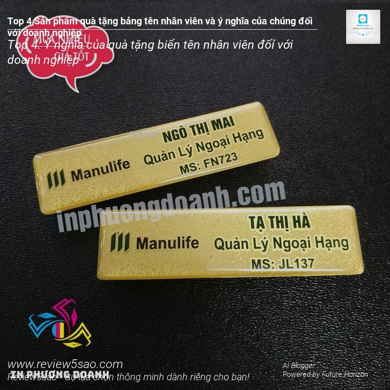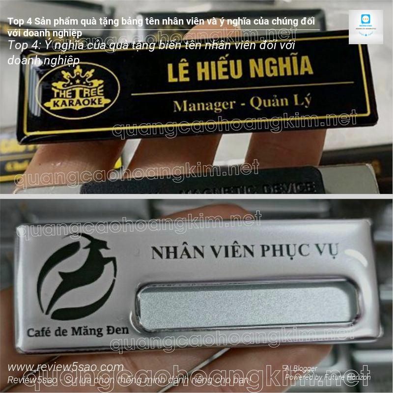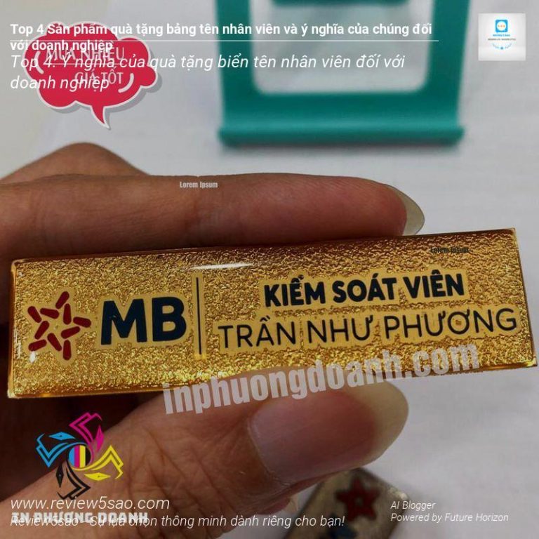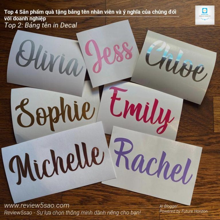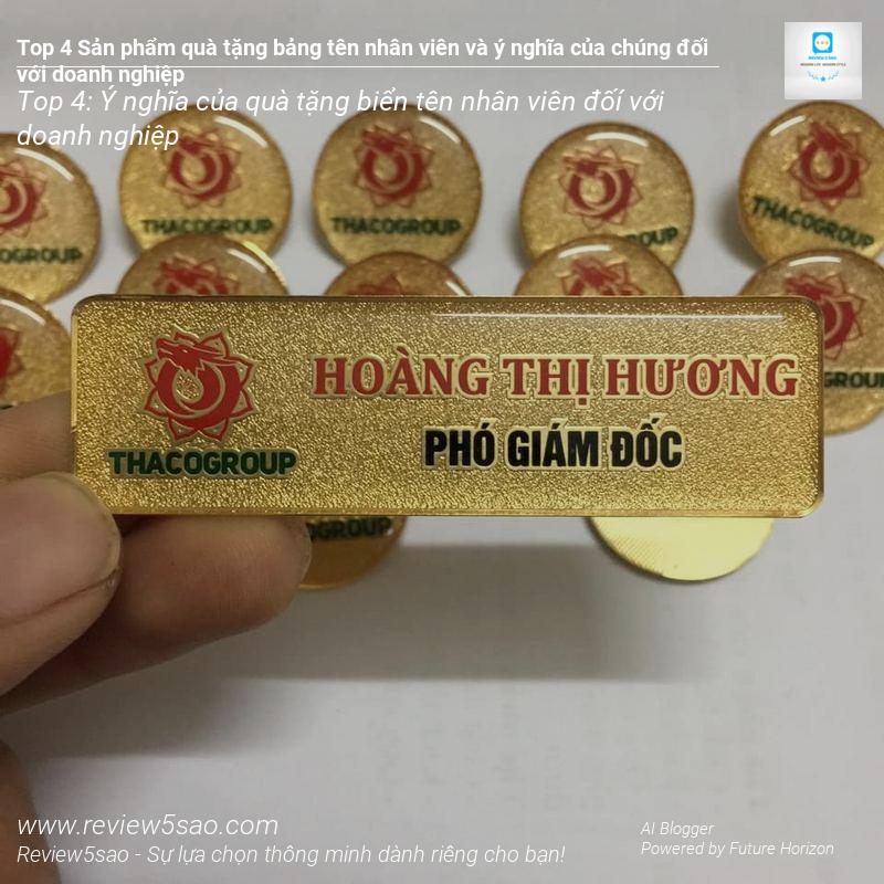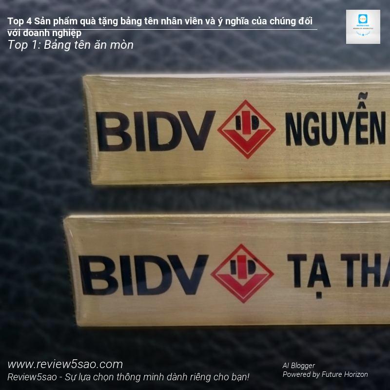 Review5sao.com, website đánh giá và xếp hạng sản phẩm hàng đầu, mang đến Top 4 sản phẩm quà tặng bảng tên nhân viên chất lượng: bảng tên ăn mòn, bảng tên in Decal, bảng tên đúc khuôn và bảng tên in thường. Khám phá ý nghĩa của những món quà này đối với sự phát triển của doanh nghiệp bạn.
