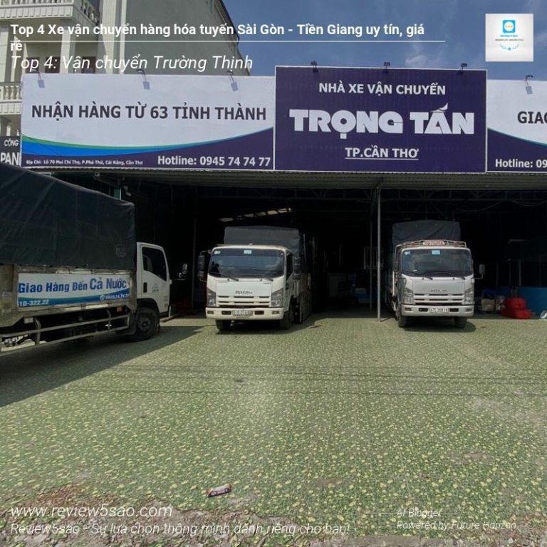 Đang tìm kiếm dịch vụ vận chuyển hàng hóa từ Sài Gòn đến Tiền Giang uy tín và giá rẻ? Review5sao.com giúp bạn so sánh 4 đơn vị vận tải hàng đầu: Công ty TNHH DV vận tải Trọng Tấn, Công ty bưu chính vận chuyển quốc tế Đông Dương – Indochina, Công Ty Cổ Phần Vận Tải Sài Gòn, và Vận chuyển Trường Thịnh. Chúng tôi đánh giá dựa trên tiêu chí uy tín, giá cả và chất lượng dịch vụ, giúp bạn đưa ra lựa chọn tối ưu nhất, tiết kiệm thời gian và chi phí.