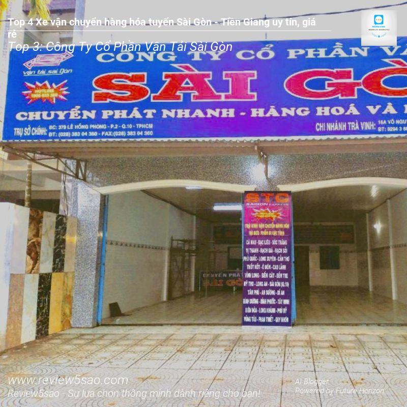 Công ty Cổ phần Vận tải Sài Gòn – nằm trong Top 3 dịch vụ vận chuyển hàng hóa tuyến Sài Gòn – Tiền Giang uy tín và giá rẻ trên Review5sao.com – tự hào với nhiều năm kinh nghiệm trong lĩnh vực vận chuyển hàng hóa trong và ngoài nước. Điểm mạnh của công ty chính là dịch vụ chuyển phát nhanh nội địa với nhiều phương thức giao nhận linh hoạt: giao hàng tận nơi, giao nhận tại văn phòng, vận chuyển hàng lẻ hoặc nguyên chuyến.