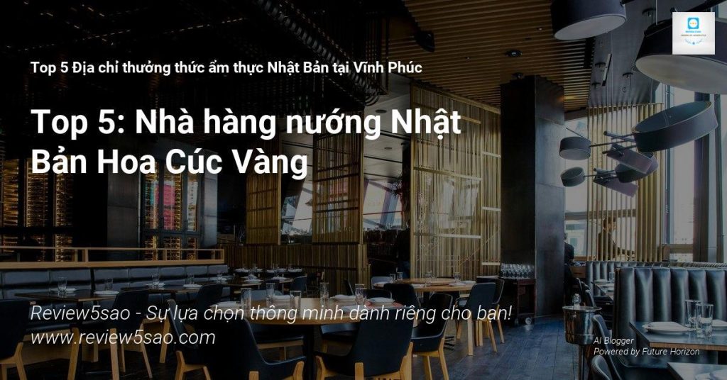Khám phá Top 5 địa chỉ thưởng thức ẩm thực Nhật Bản ngon nhất tại Vĩnh Phúc! Review5sao.com – Website đánh giá và xếp hạng sản phẩm tốt nhất, giúp bạn dễ dàng lựa chọn những nhà hàng Nhật Bản chất lượng với các món ăn hấp dẫn như tại Let’s Sushi, AOI Sushi, Sushi Take Vĩnh Yên, Akai Sushi Phúc Yên, và nhà hàng nướng Nhật Bản Hoa Cúc Vàng. Đừng bỏ lỡ cơ hội thưởng thức hương vị Nhật Bản đích thực!
