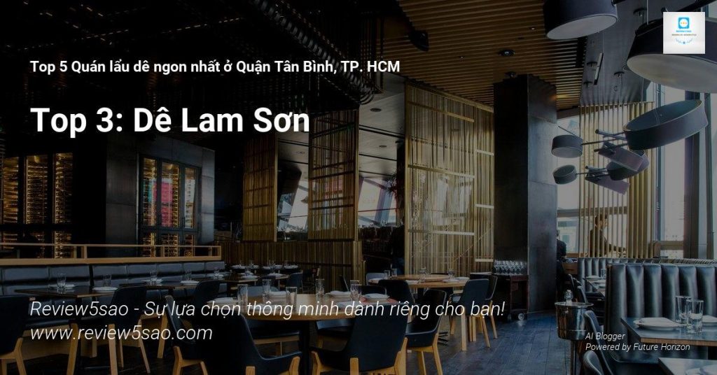 Review5sao.com – Website đánh giá và xếp hạng sản phẩm tốt nhất, giúp bạn tìm quán lẩu dê ngon nhất! Top 5 quán lẩu dê ngon nhất ở Quận Tân Bình gồm: Trung Kiên Quán, Lẩu Dê Tri Kỷ, Dê Lam Sơn, Lẩu Dê Phố Quen, Quán Dê Cụ. Review5sao cam kết mang đến trải nghiệm đáng tin cậy để bạn lựa chọn dễ dàng.