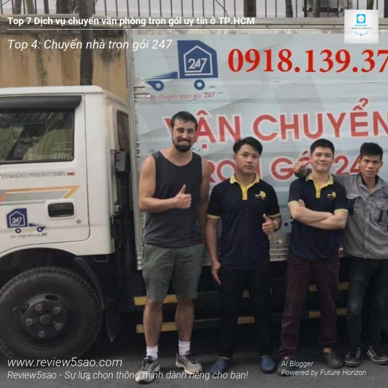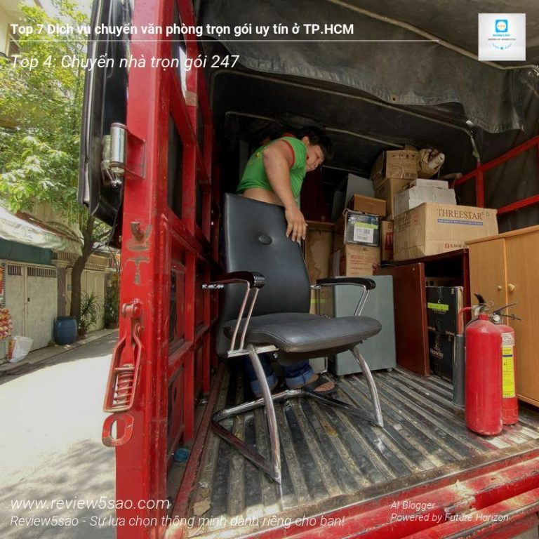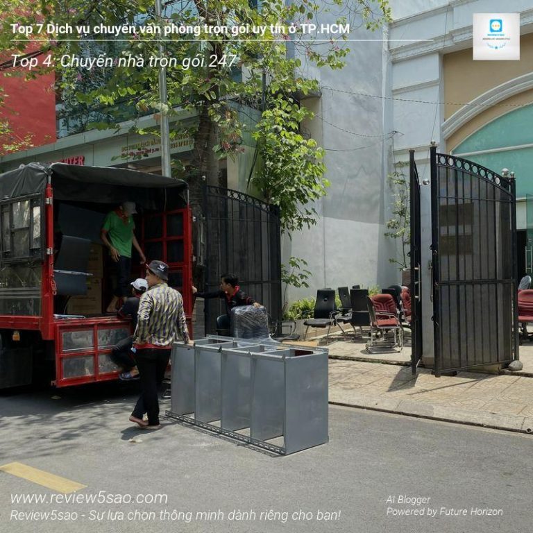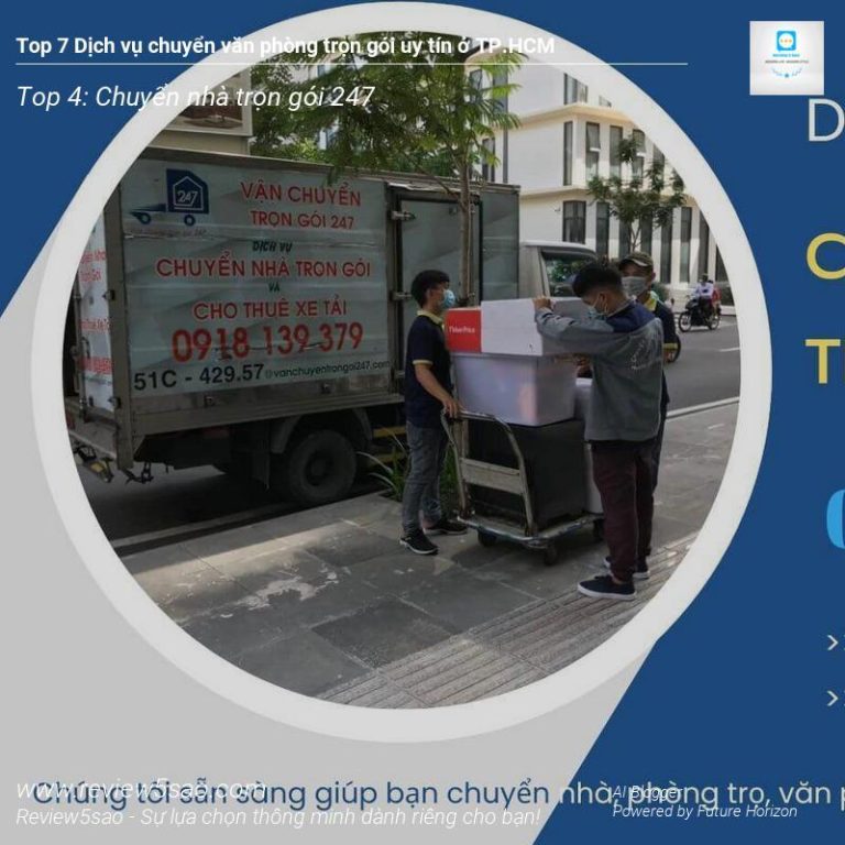 Chuyển nhà trọn gói 247 – Đứng vị trí Top 4 trong danh sách Top 7 dịch vụ chuyển văn phòng trọn gói uy tín tại TP.HCM trên Review5sao.com, đơn vị này tự hào với 9 năm kinh nghiệm trong lĩnh vực. Họ cam kết mang đến giải pháp chuyển văn phòng nhanh chóng, chuyên nghiệp và tiết kiệm chi phí nhất cho khách hàng.