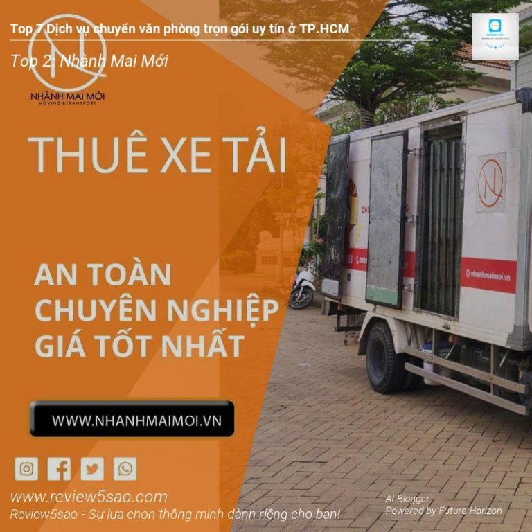 Cần tìm dịch vụ chuyển văn phòng trọn gói uy tín tại TP.HCM? Review5sao.com giúp bạn so sánh 7 lựa chọn hàng đầu: Vietnam Moving, Nhành Mai Mới, 24h Moving, Chuyển nhà trọn gói 247, Xuân Trường Moving, Vinamoves, và Xanh Moving. Đánh giá dựa trên chất lượng dịch vụ, giá cả và độ tin cậy, giúp bạn đưa ra quyết định sáng suốt nhất. Review 5 Sao – Website đánh giá và xếp hạng sản phẩm đúng, chuẩn và tốt nhất, giúp bạn tìm được món đồ phù hợp, đảm bảo, giá cả phải chăng.
