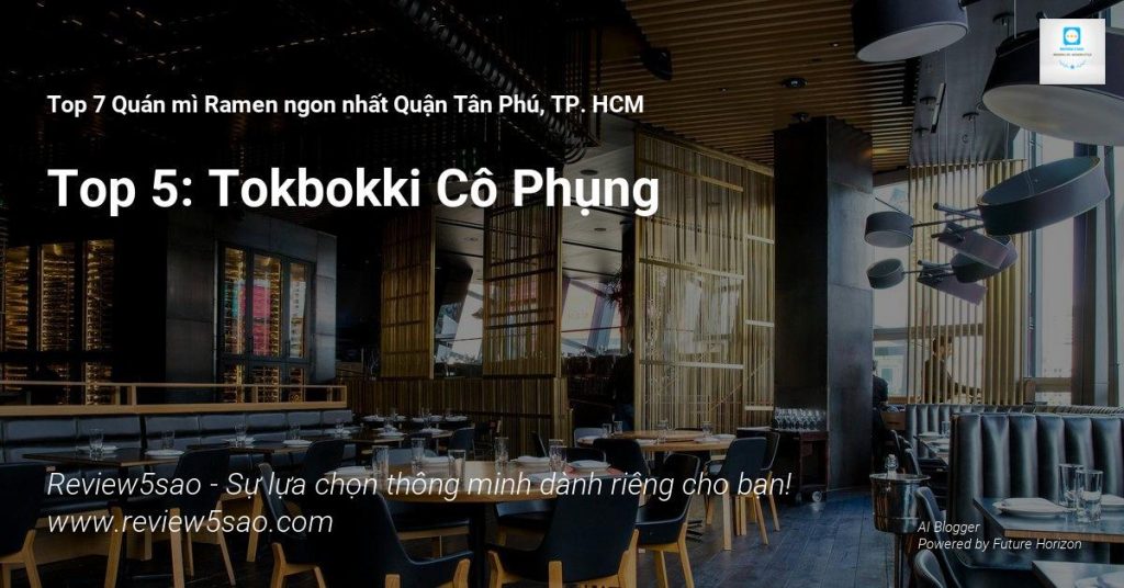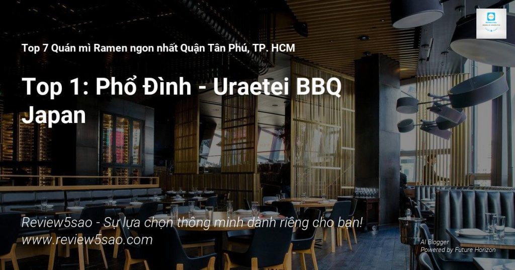 Review5sao – Website đánh giá và xếp hạng sản phẩm tốt nhất, giúp bạn tìm được món đồ phù hợp, đảm bảo, giá cả phải chăng. Top 7 quán mì Ramen ngon nhất Quận Tân Phú, TP. HCM: 1. Phổ Đình – Uraetei BBQ Japan; 2. June noodle House; 3. Sukiya Việt Nam; 4. Sushi Kei; 5. Tokbokki Cô Phụng; 6. Kaiyo Sushi; 7. Sushi Family. Khám phá ngay!