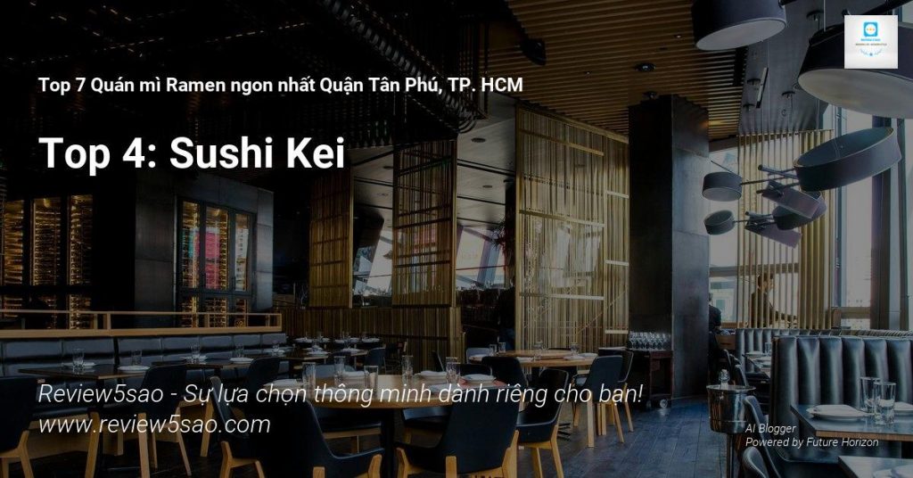Top 4 trong danh sách Top 7 Quán mì Ramen ngon nhất Quận Tân Phú, TP. HCM chính là Sushi Kei! Nằm tại vị trí thuận lợi ở 30 Tân Thắng, Celadon City, Tân Phú, TP. HCM, Sushi Kei chinh phục thực khách bằng những tô mì Ramen chuẩn vị Nhật Bản, một trải nghiệm ẩm thực khó quên.