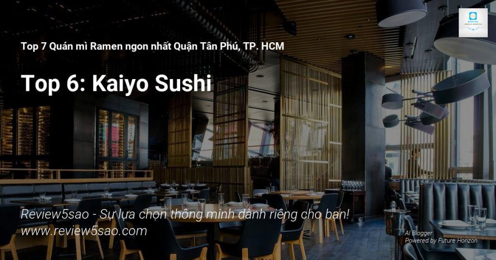 Top 6 trong danh sách Top 7 Quán mì Ramen ngon nhất Quận Tân Phú, TP. HCM, Kaiyo Sushi nổi bật với không gian Nhật Bản hiện đại, đơn giản nhưng vô cùng tinh tế. Thực đơn tại đây vô cùng đa dạng, từ những tô mì ramen với nhiều loại nước dùng thơm ngon, đậm đà, được chế biến từ những nguyên liệu tươi ngon nhất, đến các món sushi được làm từ nguyên liệu cao cấp, được tuyển chọn kỹ càng. Điều làm nên thương hiệu của Kaiyo Sushi chính là những sợi mì ramen tươi ngon, mềm dai, kết hợp hoàn hảo với nước dùng đậm đà, được ninh từ xương ống và các loại gia vị đặc trưng của Nhật Bản, tạo nên một hương vị khó quên. Mỗi món ăn đều được chế biến tỉ mỉ, cẩn thận, đảm bảo chất lượng và mang đến cho thực khách một trải nghiệm ẩm thực Nhật Bản đích thực, khó có thể tìm thấy ở bất cứ nơi đâu.