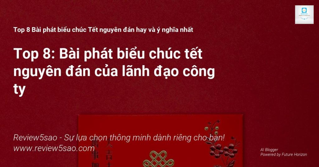Review5sao.com – Website đánh giá và xếp hạng sản phẩm tốt nhất, giúp bạn tìm được món đồ phù hợp, đảm bảo và giá cả phải chăng. Top 8 bài phát biểu chúc Tết Nguyên đán hay và ý nghĩa nhất, bao gồm bài phát biểu của hiệu trưởng, lãnh đạo công ty, và lời chúc Tết ý nghĩa dành tặng người nghèo. Tìm kiếm bài phát biểu hoàn hảo cho dịp Tết này tại Review5sao!