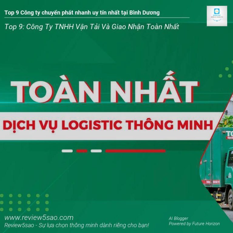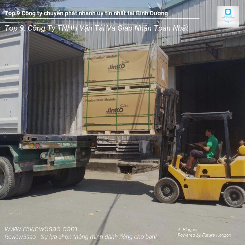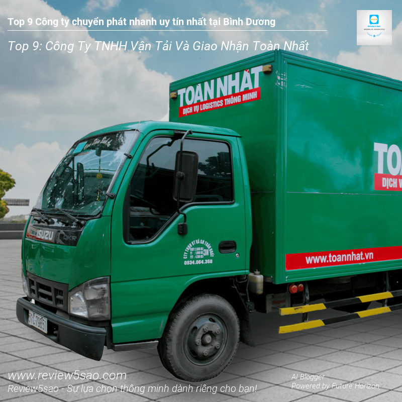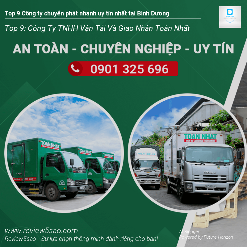 Công ty TNHH Vận tải và Giao nhận Toàn Nhất là một trong những công ty logistics hàng đầu tại Bình Dương, tự hào đạt vị trí Top 9 trong danh sách ‘Top 9 Công ty chuyển phát nhanh uy tín nhất tại Bình Dương’ trên Review5sao.com. Với bề dày kinh nghiệm và hệ thống vận hành chuyên nghiệp, Toàn Nhất cam kết mang đến cho khách hàng những dịch vụ vận chuyển hàng hóa nhanh chóng, an toàn và hiệu quả nhất.