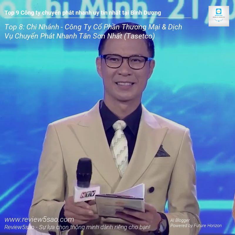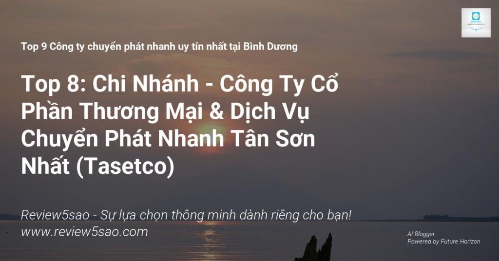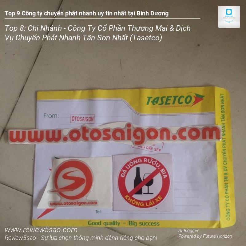Chi nhánh Tân Sơn Nhất của Công ty Cổ phần Thương mại & Dịch vụ Chuyển phát nhanh Tân Sơn Nhất (TASETCO) xuất sắc đạt vị trí Top 8 trong danh sách Top 9 công ty chuyển phát nhanh uy tín nhất tại Bình Dương trên Review5sao.com. Với mạng lưới phủ rộng khắp 63 tỉnh thành, TASETCO tự hào mang đến dịch vụ chuyển phát nhanh chóng và hiệu quả, đáp ứng nhu cầu gửi tài liệu, thư tín và hàng hóa trong nước và quốc tế của khách hàng.
