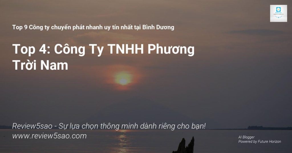 Công ty TNHH Phương Trời Nam – Đứng vị trí Top 4 trong danh sách Top 9 công ty chuyển phát nhanh uy tín nhất tại Bình Dương trên Review5sao.com, một website chuyên về Review và đánh giá sản phẩm, được hỗ trợ bởi công nghệ AI từ Future Horizon, mang đến những đánh giá chất lượng, đáng tin cậy và được xử lý thông tin từ công nghệ AI mới nhất.